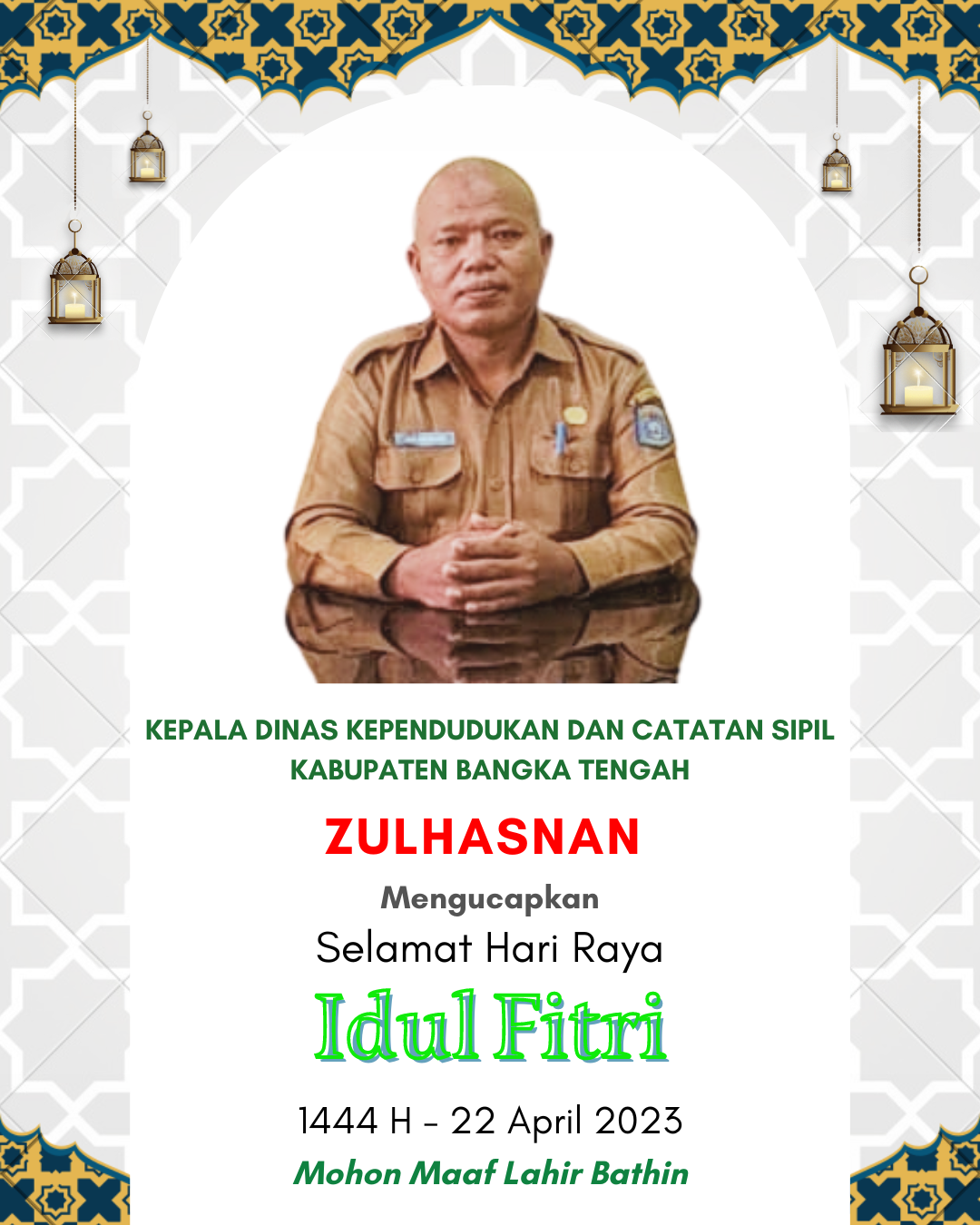 Kepala Dinas Kependudukan dan Catatan Sipil Bangka Tengah Mengucapkan Selamat Hari Raya Idul Fitri 1444 HApril 20, 2023April 22, 2023oleh adminoleh adminJangan LewatkanKepala dinas Perumahan,Pemukiman Dan Perhubungan Kabupaten Bangka Tengah,Mengucapkan Selamat Hari Raya Idul Fitri 1446 H/2025 Mohon Maaf Lahir Dan BathinKepala Sekolah & Staf Pegawai Serta Keluarga Besar SMPN 04 Simpang Katis Mengucapkan Selamat Hari Raya Idul Fitri 1445 H/ 2024 M Mohon Maaf Lahir Dan BathinKepala Dinas Perpustakaan dan Kearsipan Kabupaten Bangka Selatan Mengucapkan Selamat Hari Raya Idul Fitri 1445 H/ 2024 M Mohon Maaf Lahir Dan BathinKepala Dan Seluruh Staf Pegawai Dinas Pendidikan Prov. Kep. Babel Mengucapkan Selamat Hari Raya Idul Fitri 1445 H/ 2024 M Mohon Maaf Lahir Dan BathinKepala Dinas Pendidikan Kabupaten Bangka Tengah Mengucapkan Selamat Hari Raya Idul Fitri 1445 H/ 2024 M Mohon Maaf Lahir Dan Bathin