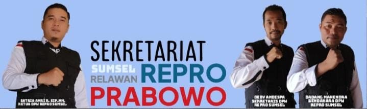 Satria Amri Ramadhan, S.IP.MM yang di percaya penuh oleh Dewan Pimpinan Nasional (DPN) Repro Indonesia Kuat yaitu bapak Hotmian Siregar, untuk menjadi team pemenangan Dewan Pimpinan Wilayah (DPW) Sumatera Selatan menyatakan sikap kepada awak media ” Syukur Alhamdulillah dan terima kasih atas kepercayaan dari Ketua umum Dewan Pimpinan Nasional (DPN) Repro Indonesia Kuat yaitu Bapak Hotmian Siregar. Saya pastikan Bapak Prabowo Gibran akan menang menjadi Presiden dan Wakil Presiden 2024 – 2029. Kami dari 17 Kabupaten/Kota wilayah sumatera selatan akan berjuang keras memenangkan Bapak Prabowo Gibran dalam 1 (Satu) putaran “.