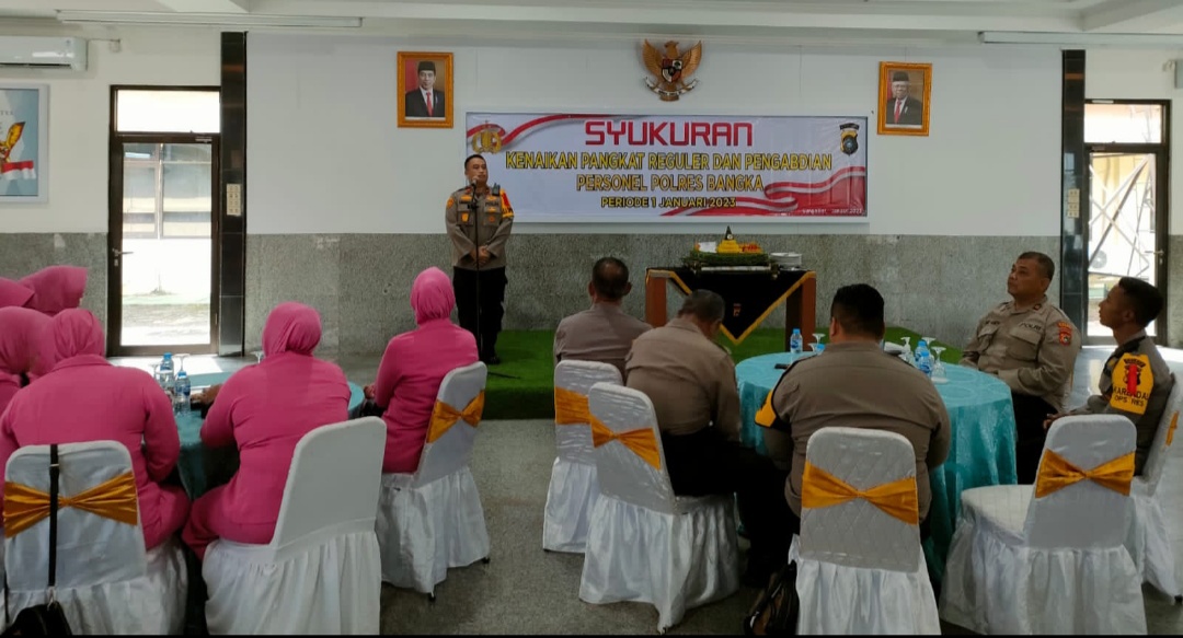 Berempat di Aula Tribrata Polres Bangka Acara tersebut dipimpin Waka Polres Bangka Kompol. R.Wardhana Utama, S.I.K., dihadiri PJU,Perwira polres Bangka, Wakil Ketua Bhayangkari Cabang Bangka dan 45 Personil Polres Bangka yang Naik Pangkat beserta Bhayangkari.