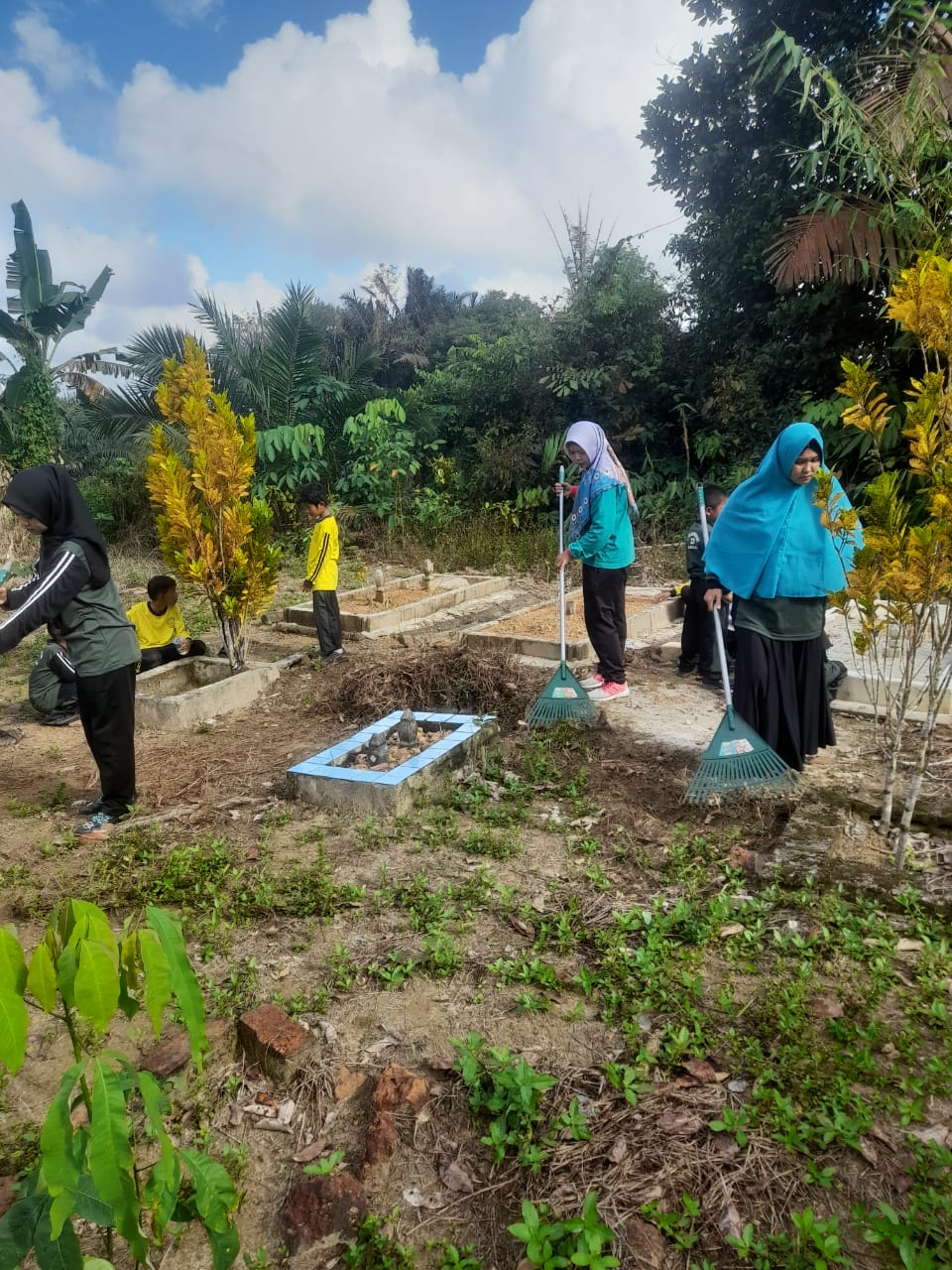Limbung, (www.Babelaok.com),- Dalam rangka menyambut Bulan Suci Ramadhan yang tidak lama lagi akan datang Sekolah Dasar Negeri (SDN) 20 Merawang melaksanakan kegiatan gotong royong untuk membersihkan pekuburan di Dusun Limbung Desa Jada Bahrin Kecamatan Merawang Kabupaten Bangka.