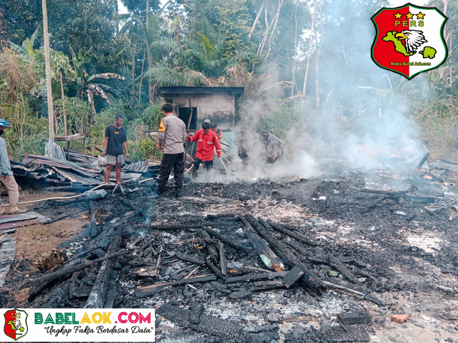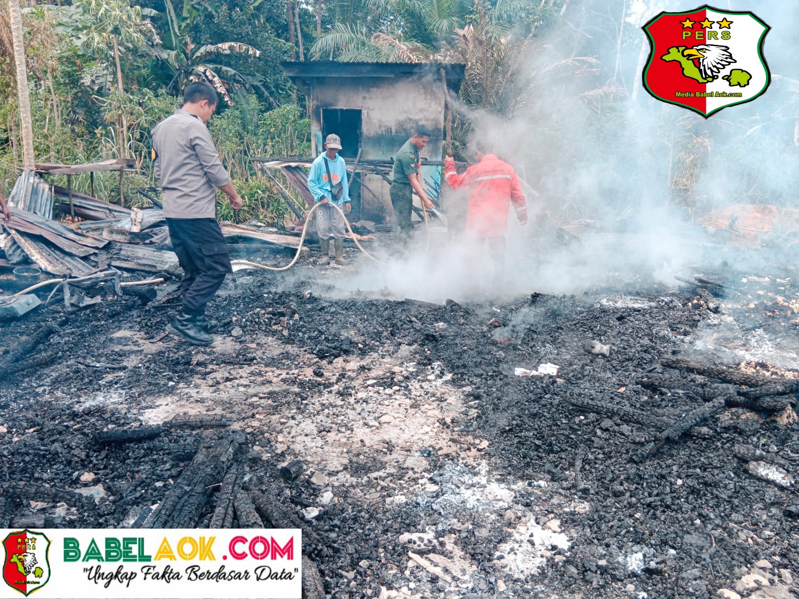 Gerak cepat bersama anggota Polsek Simpang Teritip jajaran Polres Bangka Barat mendatangi lokasi kebakaran sebuah rumah.
